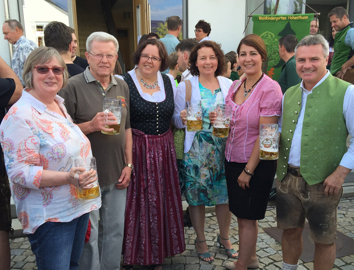 Beim Bieranstich vor der Gemeinde in Hohenthann