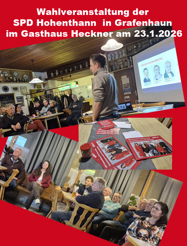 Grafenhaun. Am Freitag, 23.1.2026, stellten sich im Gasthaus Heckner in Grafenhaun die Kandidatinnen und Kandidaten der SPD für den Gemeinderat vor. Dr. Stefan Schiessl, der die Liste anführt, begrüßte die interessierten Gäste im vollbesetzten Gastraum. Er erläuterte die Themen, die „uns wichtig sind“, wie z.B. Bauen in der Gemeinde. So sollte die Bauverpflichtung auf 10 Jahre verlängert werden, um jungen Leuten mehr Zeit für ihre Lebensplanung zu geben und es ihnen erleichtern, in ihrer Heimatgemeinde bleiben zu können. Auch beim Ausblick auf zukünftige Projekte, die den neuen Gemeinderat beschäftigen werden, muss der soziale Aspekt berücksichtigt werden. Für Themen, wie Umwelt, Radwege, öffentlicher Nahverkehr sollte es intelligente Lösungen geben. Die Kandidatinnen und Kandidaten erläuterten ihre Schwerpunkte, wie nachhaltiger Umgang mit Umweltresourcen, Infrastruktur in den umliegenden Dörfern und sozialer Wohnungsbau. Auch den Jugendlichen mehr Gehör verschaffen, war Miriam Hatzl, der Jüngsten mit 18 Jahren auf der Liste, wichtig.